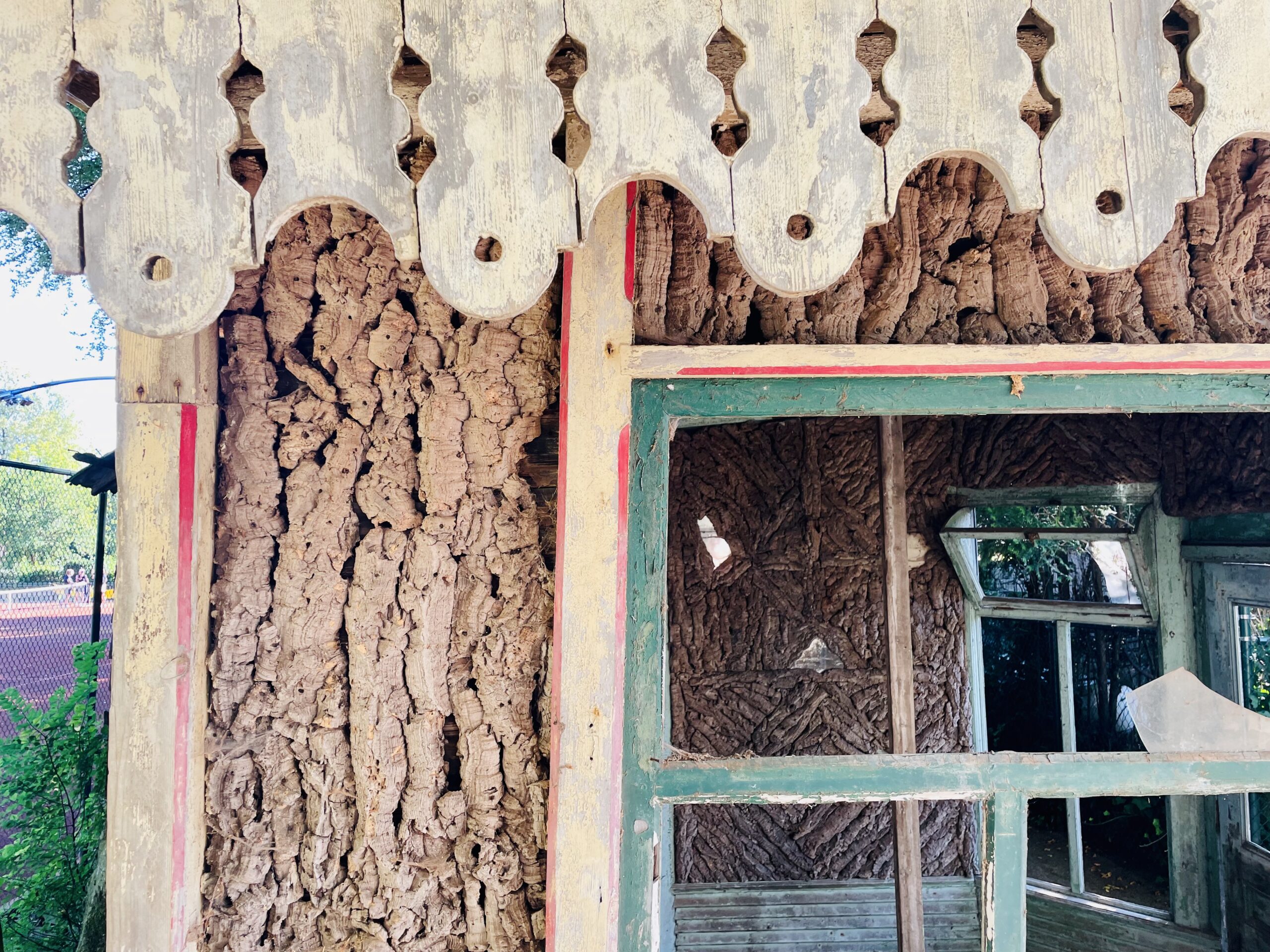 Ontdek een juweel van verborgen geschiedenis middenin de Groningse stadswijk Helpman! Op het Tennispark Vorenkamp is recent een bijzonder, origineel en teer stukje erfgoed herontdekt: een zogenaamd Melkhuisje. Het kleine houten paviljoentje is in vervallen staat, maar je ziet al snel de charme ervan: de sierlijsten, de vervaagde, maar bonte kleuren en de bekleding met kurkschors en spiegeltjes. Vooral die kurkschors maakt het Melkhuisje Vorenkamp tot uitzonderlijk erfgoed.